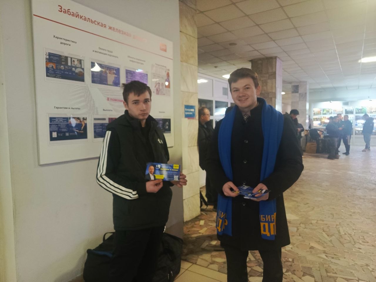 Руководитель молодёжной организации ЛДПР в Забайкалье Вадим Дутов побывал на читинском вокзале, проводил земляков в Москву и лично вручил им билеты на выставку «Жириновский. Продолжение. ЛДПР».